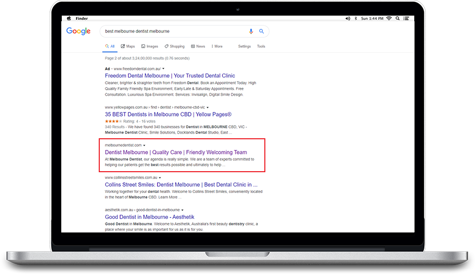 - Client wants their main keywords “Dentist Melbourne” on #1 in google.